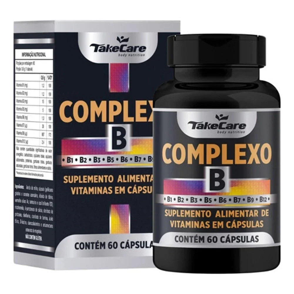 O Complexo B Take Care reúne 8 vitaminas fundamentais (B1, B2, B3, B5, B6, B7, B9 e B12) que atuam em diversas funções essenciais do organismo.